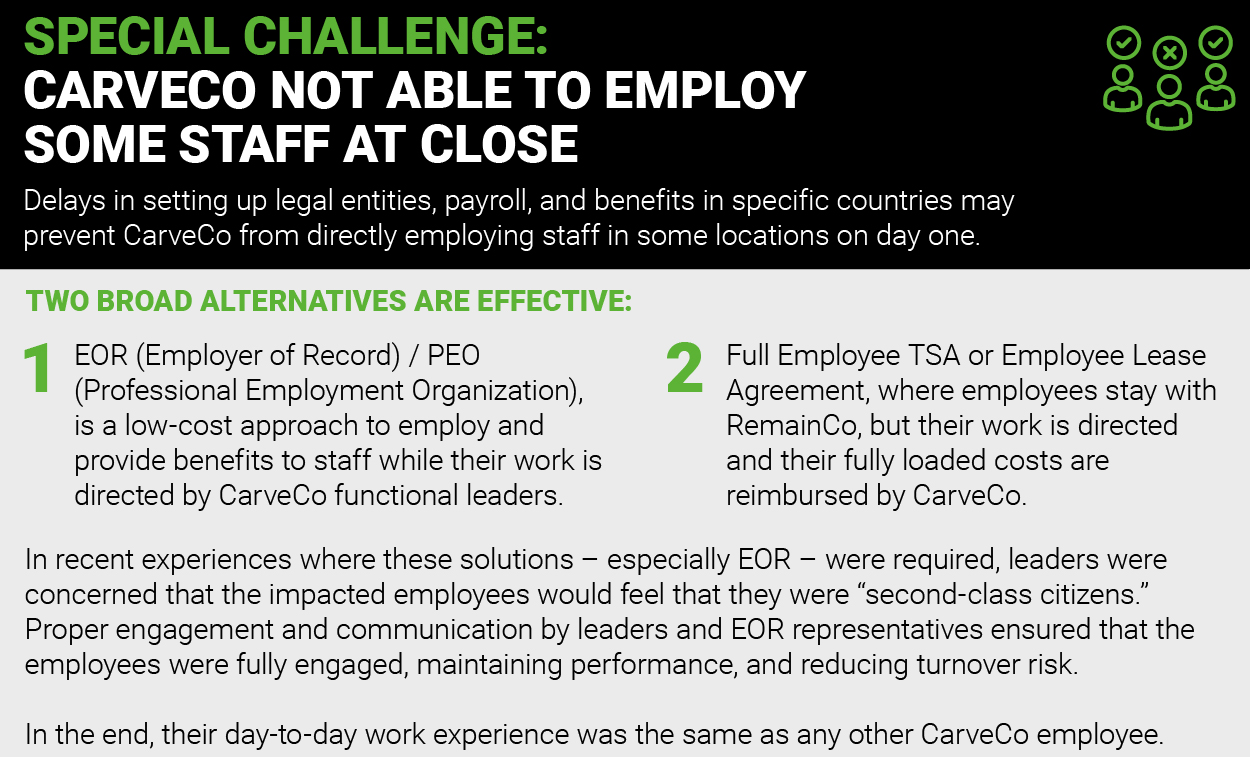 From our experience in hundreds of complex carve-outs, we see five typical people-related topics that are critical to “get right.”