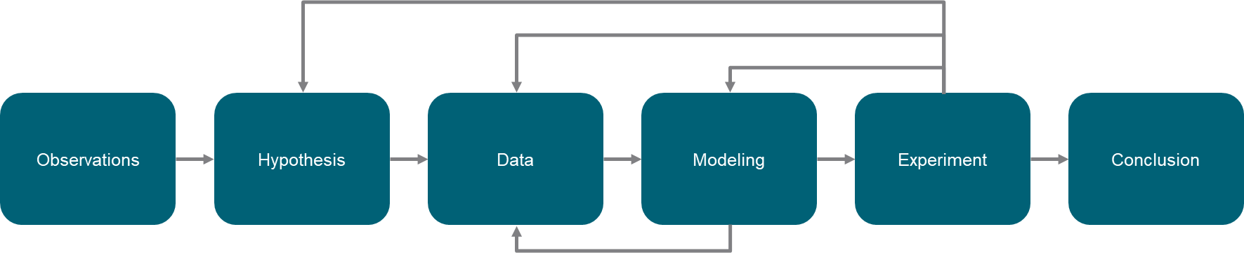 Observation --> Hypothesis --> Data --> Experiment --> Conclusion