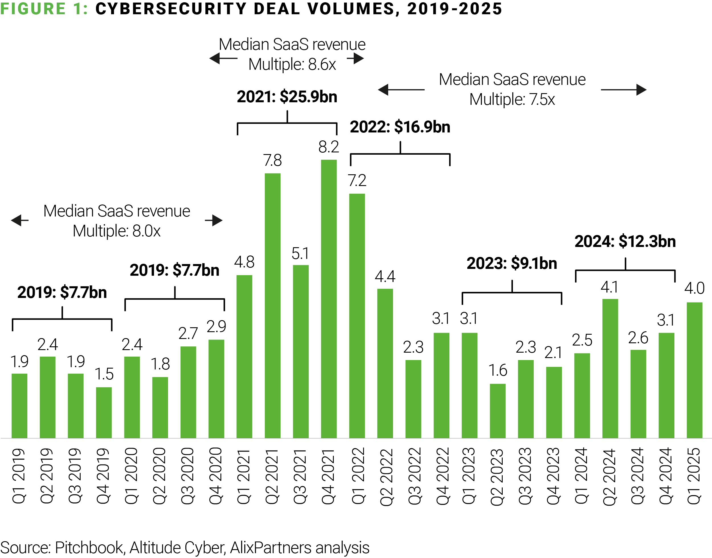 While 2024 merger and acquisitions (M&A) volumes remain below peak levels, activity has rebounded meaningfully (figure 1). Through June 2025, PE firms completed 137 cybersecurity transactions, an annualised pace on track to match the 405 deals in 2024.