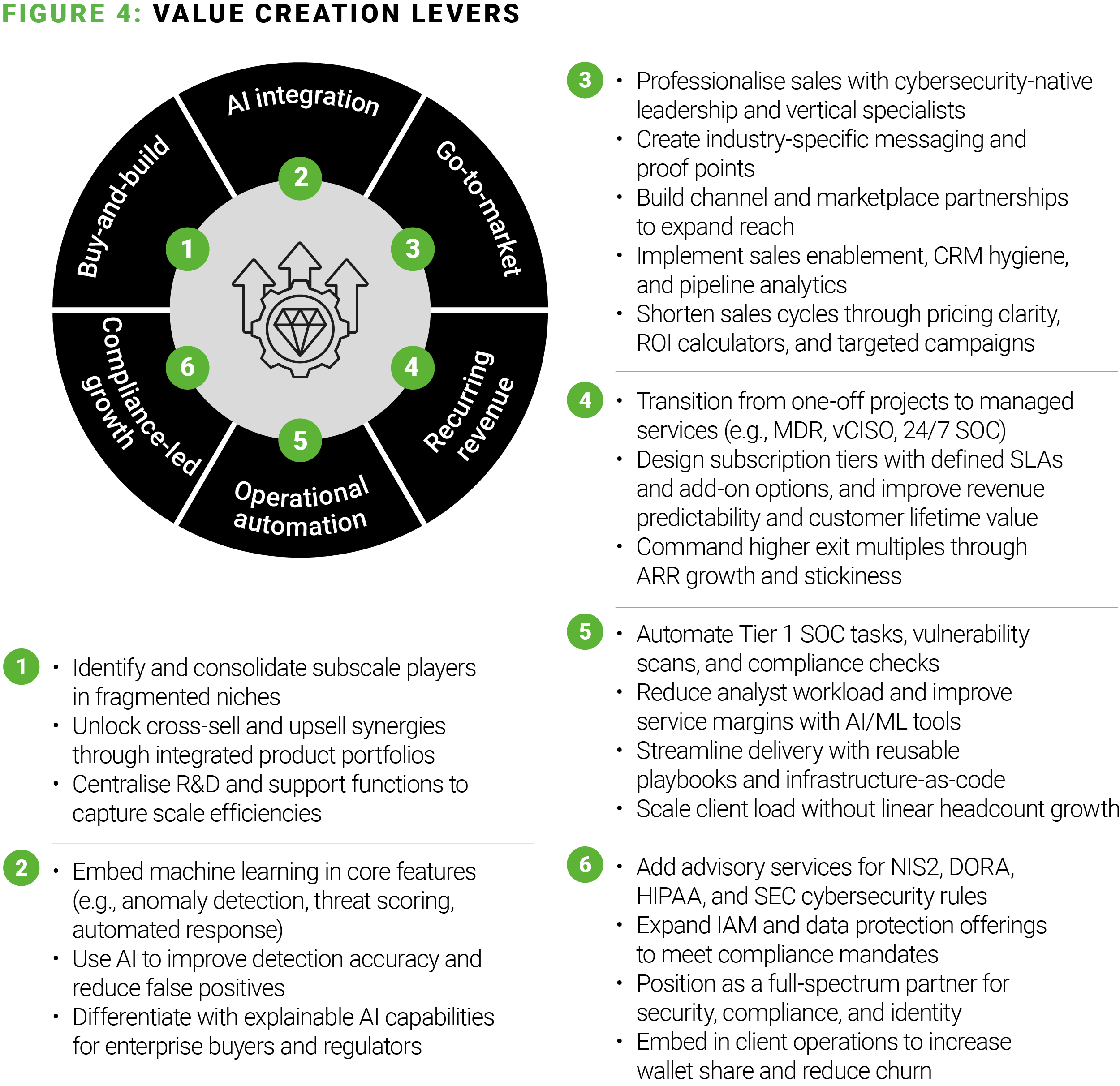 Our experience working with cybersecurity companies and PE firms has shown that these value creation levers are the most effective across product and service companies: