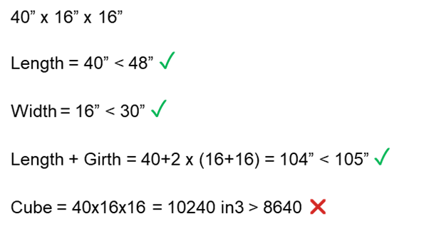 For example, a 40”x16”x16” box would not have incurred an Additional Handling Surcharge before but will now.