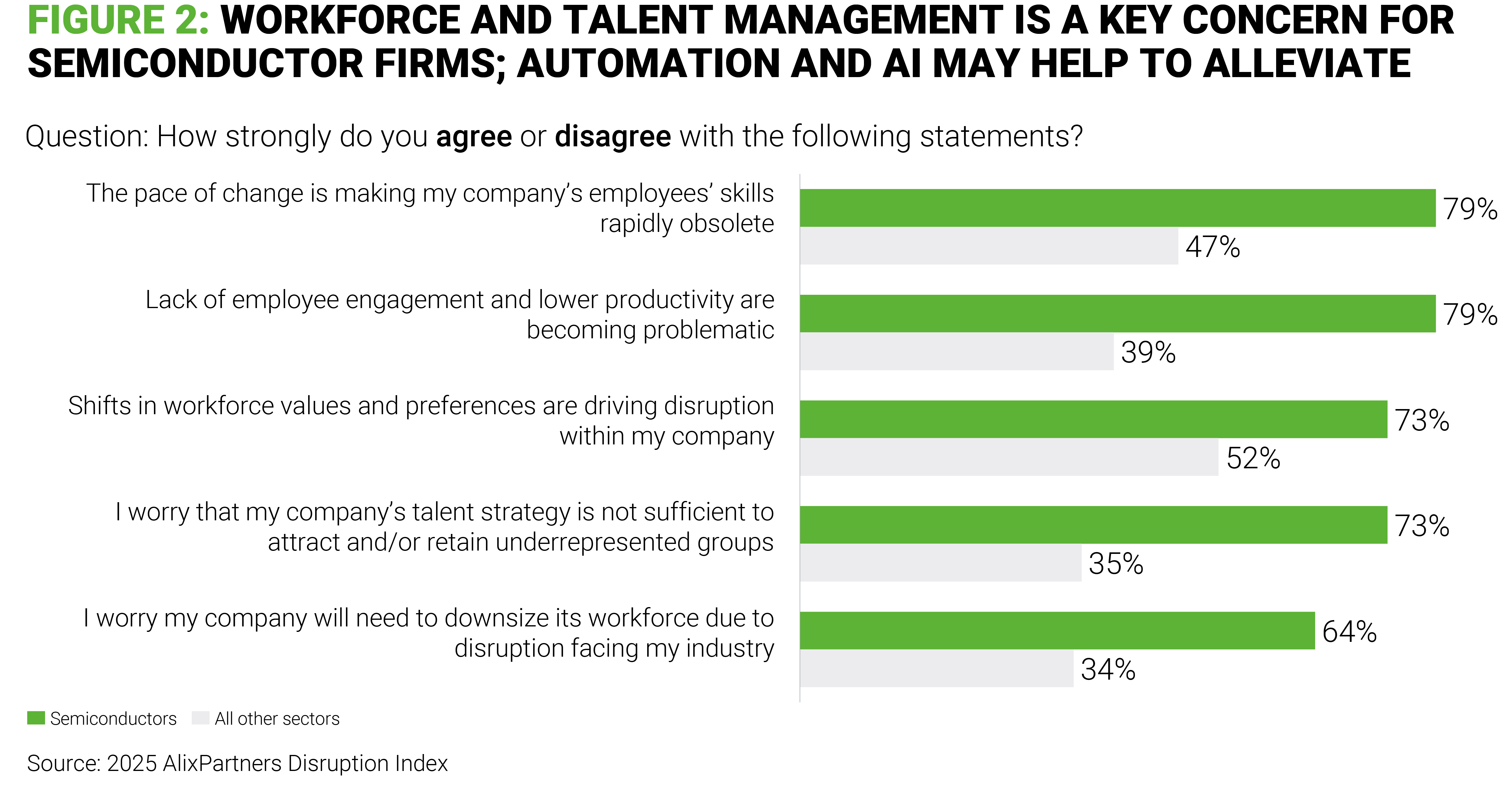 As observed in the annual AlixPartners Disruption Index, AI represents a pivotal moment in the semiconductor industry, creating unprecedented demand for specialized chips in a more diversified end market while offering unparalleled opportunity to improve the full cycle of chip design and fabrication. It also reinforces the importance of securing long-term customer agreements and co-investment partnerships that help reduce volatility during future downcycles.