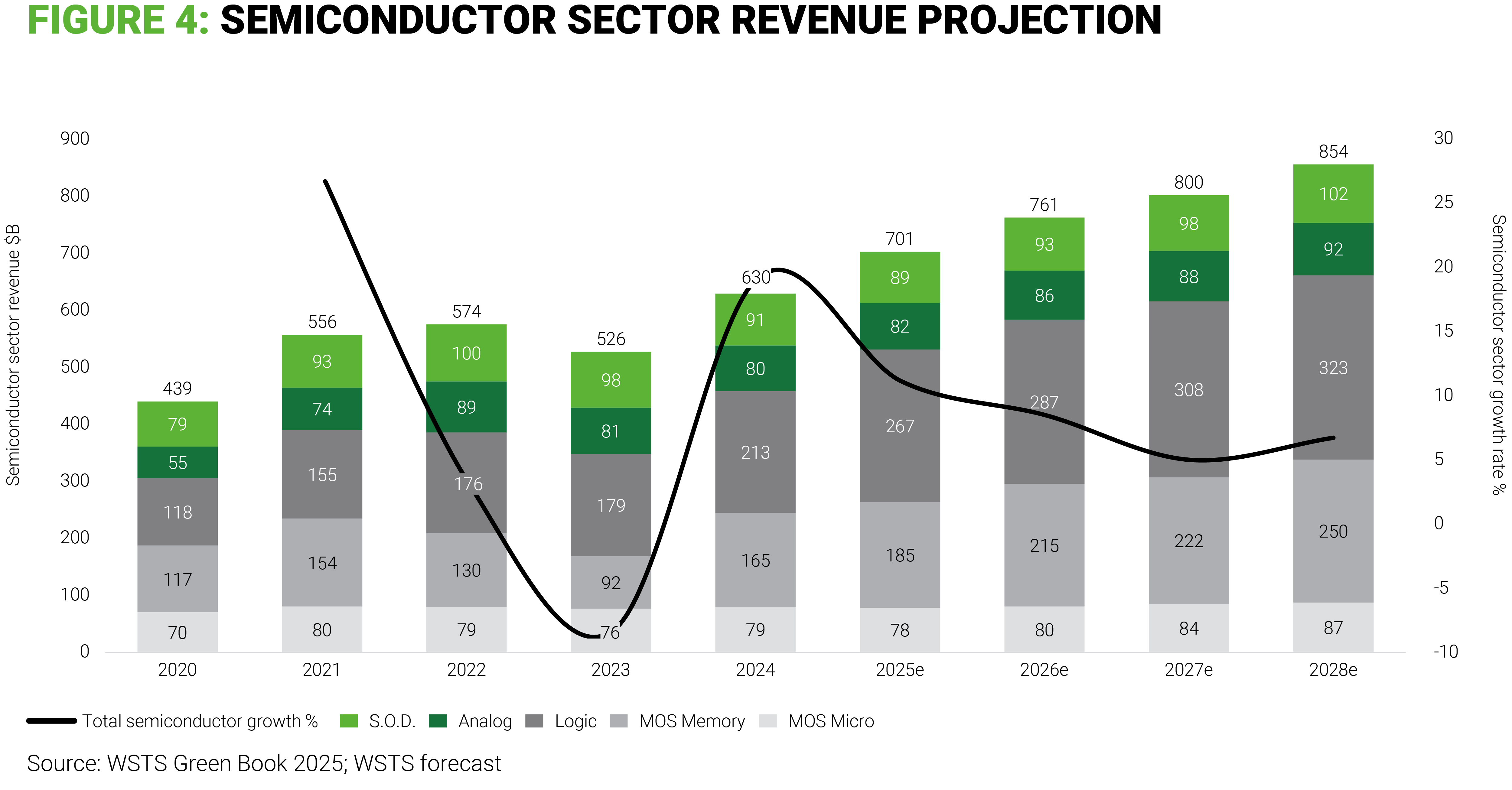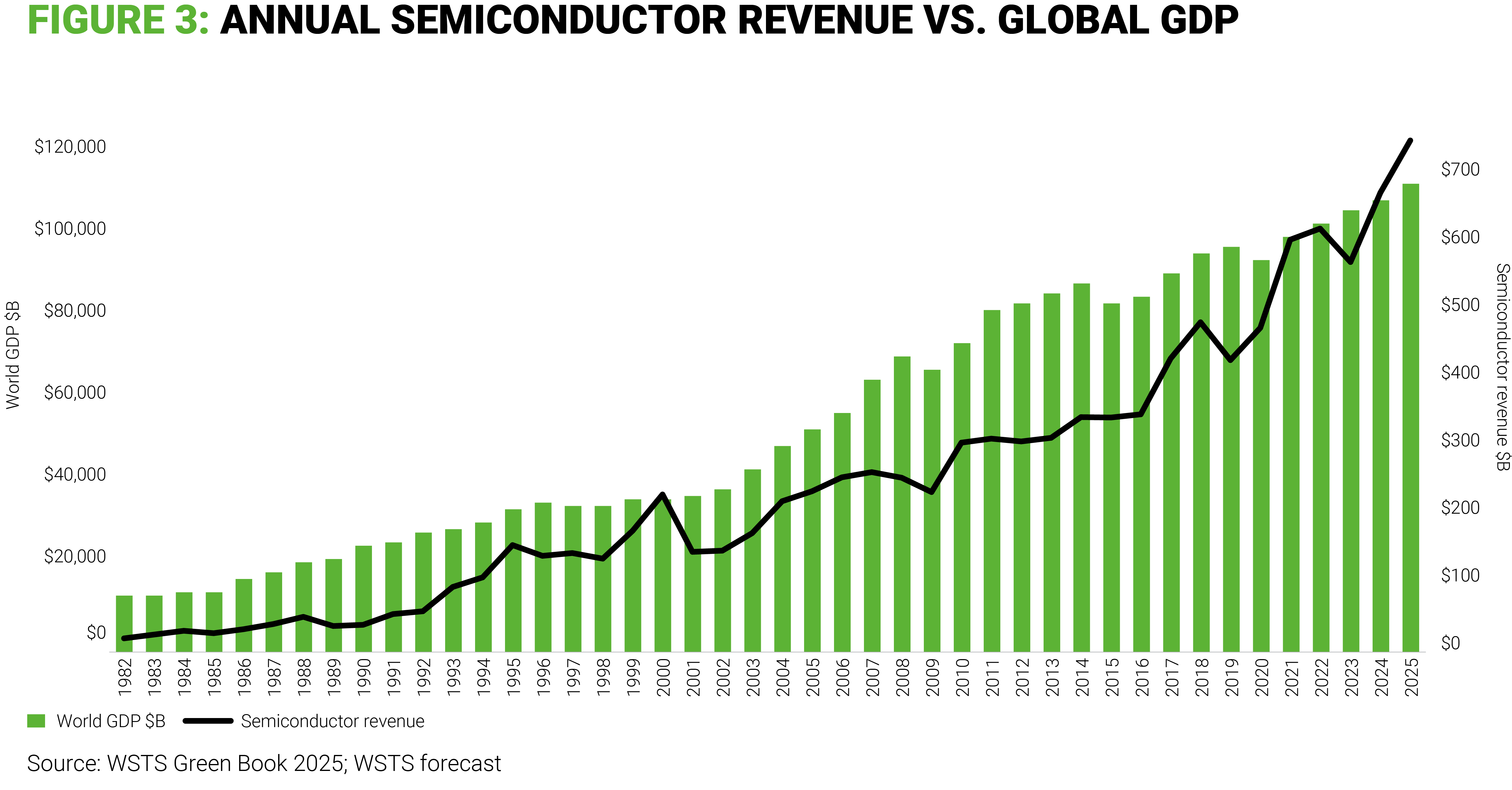 This is what we observe today with strength in high performance computing applications related to AI large language model (LLM) training balancing weaknesses in other sectors, like automotive or industrial. Per World Semiconductor Trade Statistics (WSTS), the global semiconductor market is projected to expand by 11.2% in 2025, reaching a total value of greater than $700 billion, primarily driven by demand in the logic and memory segments of artificial intelligence and cloud infrastructure.