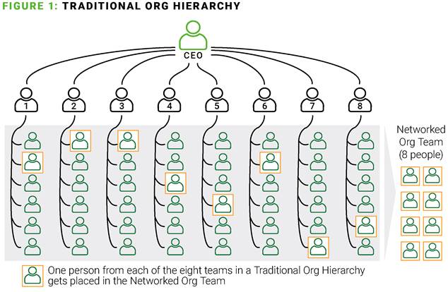 Figure 1 is an illustrative example of how a networked organization team can be formed by selecting top talent across traditional organizations to form a cross-functional team
