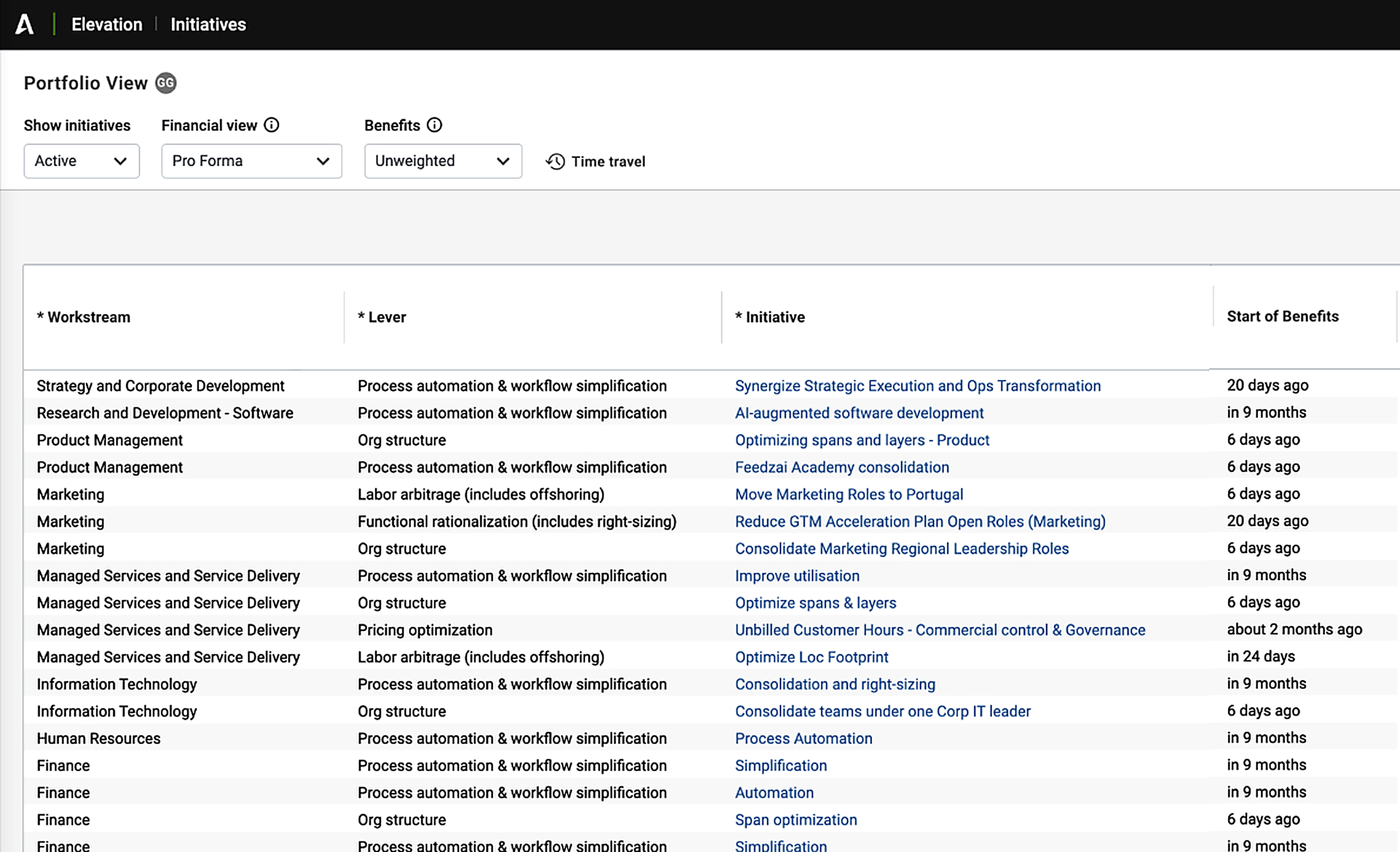 Elevation combines the rigor of AlixPartners’ proven transformation methodology with modern technology to help teams turn plans into measurable results.